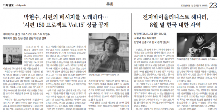 [기사] 박현수, 시편 메시지 노래… ‘시편 150 프로젝트 Vol.15’ 싱글 공개(기독일보)